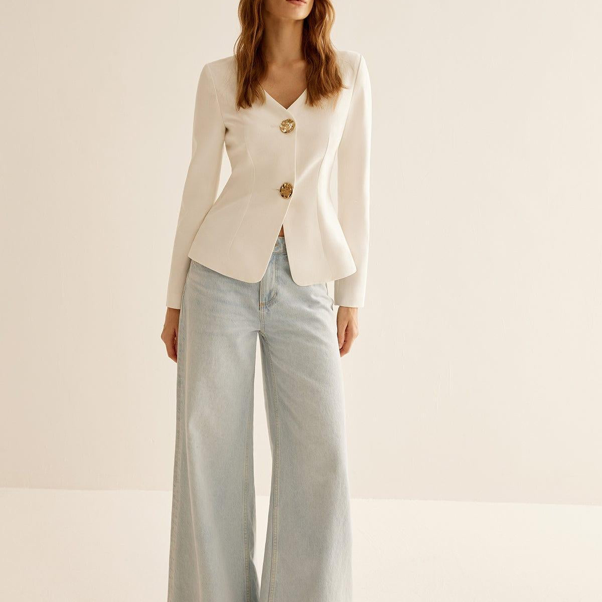 Damska elegancka marynarka jednorzędowa o klasycznym kroju