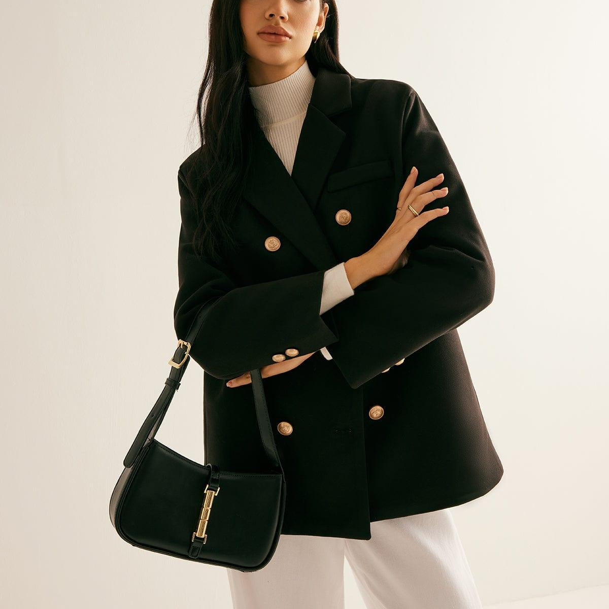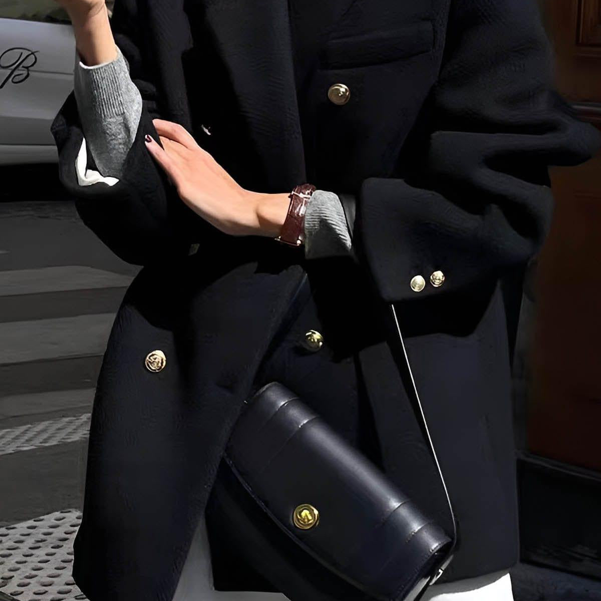 Damski elegancki płaszcz dwurzędowy z guzikami
