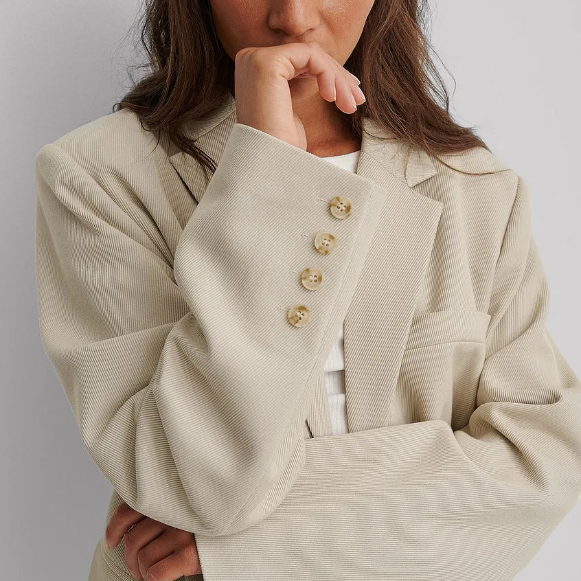 Damska krótka kurtka dwurzędowa w stylu marynarki