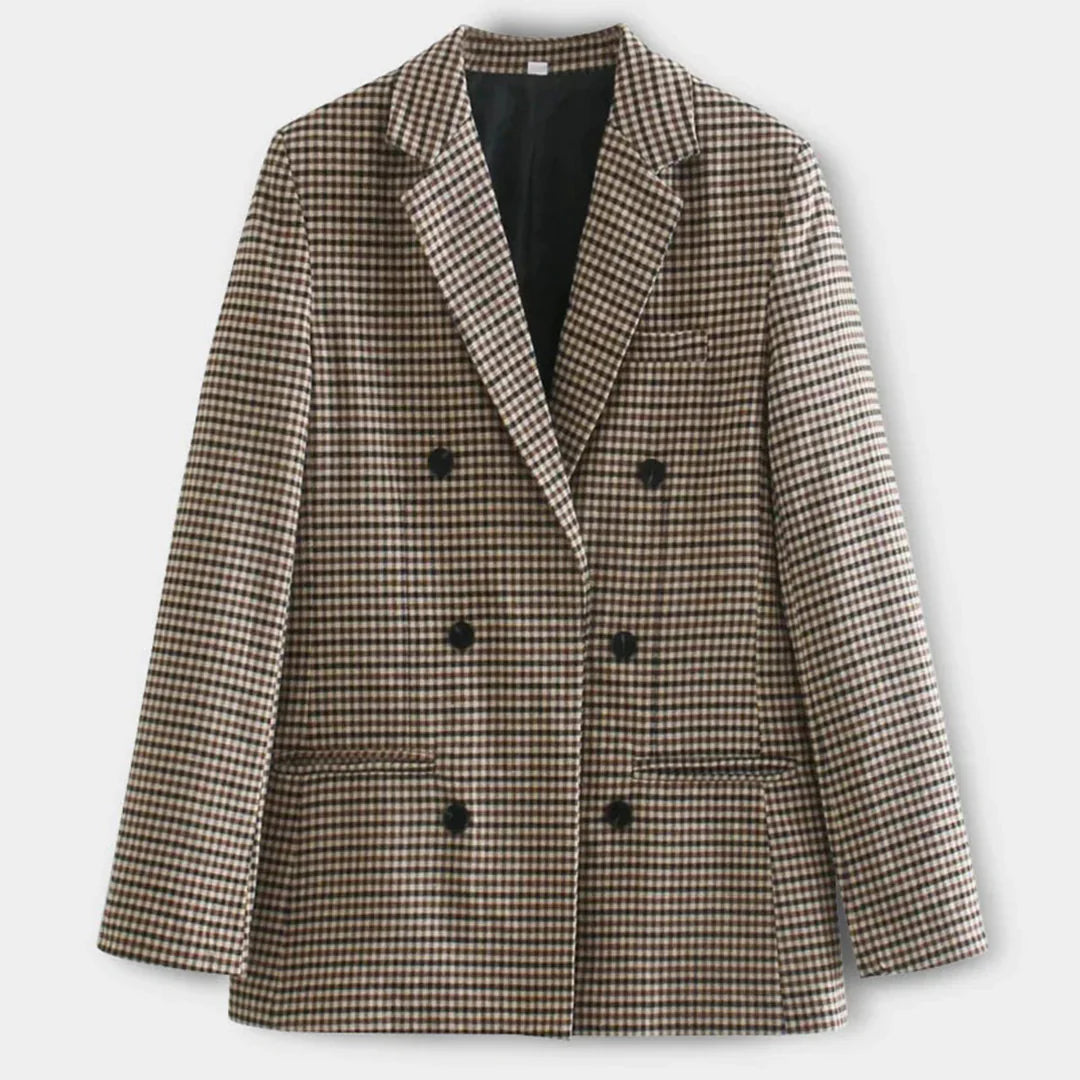 Damska marynarka dwurzędowa w kratkę o klasycznym kroju