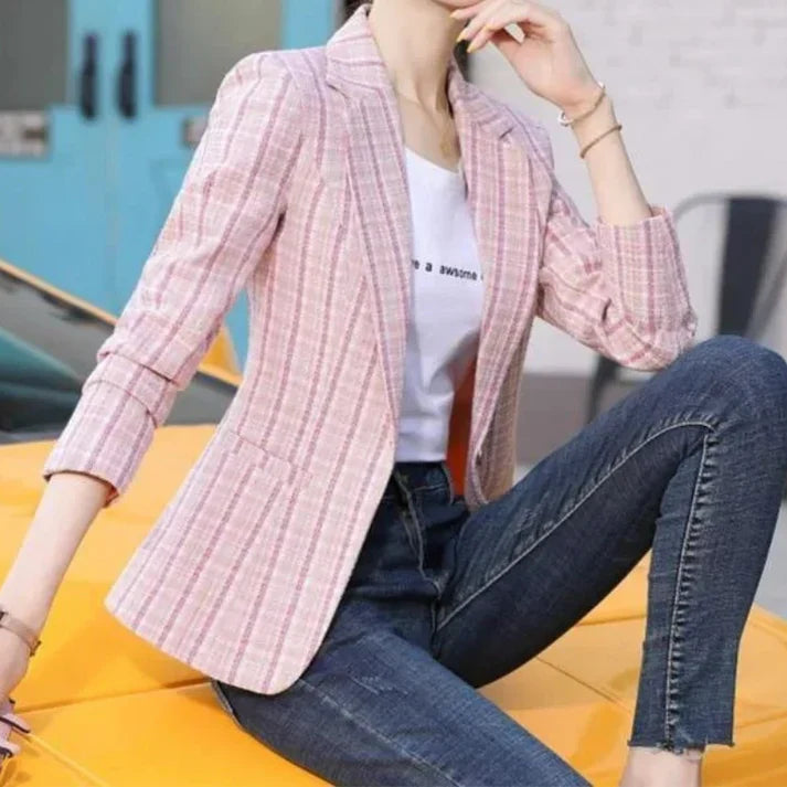 Damska elegancka marynarka w kratkę o dopasowanym kroju