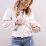 Marynarka, która łączy nowoczesną elegancję z subtelną kobiecością – idealna dla kobiet ceniących styl i pewność siebie.