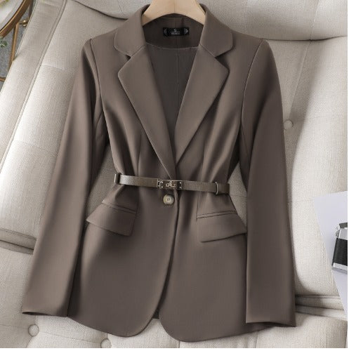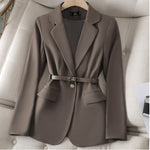 Ta elegancka marynarka damska z paskiem w talii to idealne połączenie klasy, kobiecości i nowoczesnego stylu. Wykonana z wysokiej jakości, przyjemnego w dotyku materiału, zapewnia komfort noszenia i doskonałe dopasowanie do sylwetki. Pasek pięknie podkreśla talię, tworząc efekt wysmuklonej figury, a klasyczny kołnierz i dopracowane detale dodają całości elegancji. Marynarka świetnie sprawdzi się w biurze, na spotkaniu biznesowym czy wieczornym wyjściu, stanowiąc stylową bazę dla wielu outfitów. Można ją nosić zarówno ze spodniami, jak i spódnicą, tworząc look pełen klasy i pewności siebie.