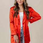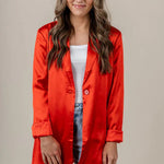 Ta wyjątkowa satynowa marynarka to idealny wybór dla kobiet, które lubią łączyć elegancję z nutą nowoczesnego stylu. Wykonana z delikatnego, połyskującego materiału o satynowym wykończeniu, pięknie odbija światło i dodaje blasku każdej stylizacji. Luźny, lekko oversize’owy krój zapewnia komfort noszenia i swobodę ruchów, a klasyczny fason z klapami i prostym zapięciem sprawia, że marynarka pasuje zarówno do codziennych, jak i wieczorowych outfitów. Doskonała do jeansów, spodni z wysokim stanem lub eleganckiej sukienki – doda Twojemu wyglądowi subtelnej elegancji i wyrazistości.