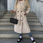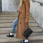 Elegancki płaszcz dwurzędowy midi z kołnierzem