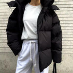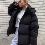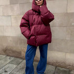 Pikowana kurtka zimowa oversize z kapturem i stójką