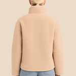 Ciepła, przytulna i stylowa – ta bluza sherpa to doskonały wybór na chłodne dni w domowym lub miejskim stylu.