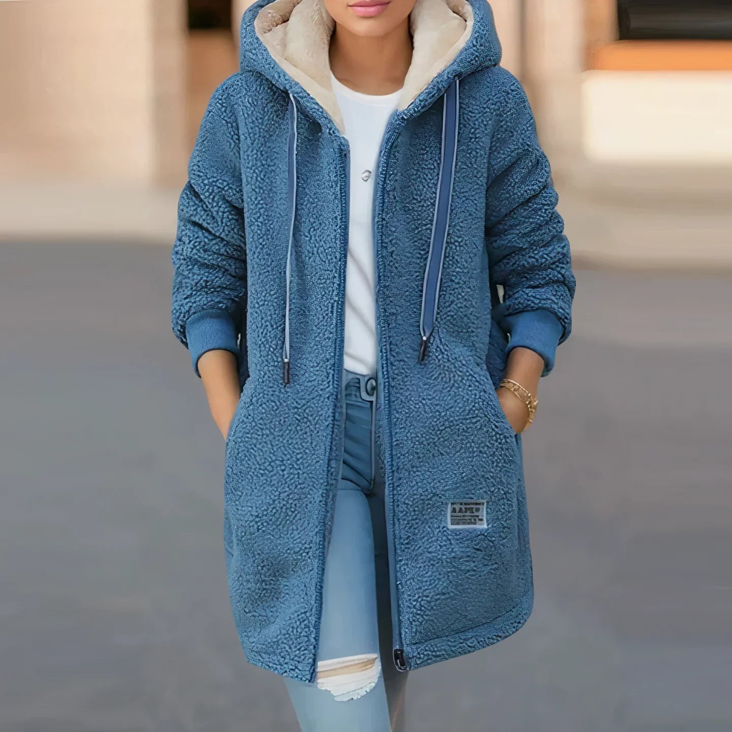 Ciepła bluza damska oversize z kapturem z futerkiem to idealny wybór na chłodne dni, łączący wygodę i modny, miejski styl. Wykonana z miękkiego, pluszowego materiału typu „teddy”, doskonale otula ciało, zapewniając przyjemne ciepło i komfort. Luźny krój oversize gwarantuje swobodę ruchów, a duży kaptur z troczkami dodaje jej casualowego uroku. Bluza ma praktyczne kieszenie, które pozwalają ogrzać dłonie lub schować drobiazgi. Idealna do noszenia na co dzień — na spacery, zakupy czy weekendowy odpoczynek. Świetnie komponuje się z jeansami, legginsami czy sportowym obuwiem, tworząc przytulny, stylowy look.