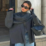 Można je nosić na sweter, koszulę lub cienką kurtkę, tworząc modny look idealny na jesienne spacery, spotkania w mieście czy chłodne dni w pracy. Dzięki luźnemu fasonowi i stylowemu designowi ponczo pasuje do każdej sylwetki, podkreślając szyk i nowoczesność.