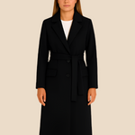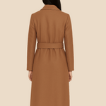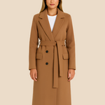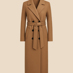 Ten długi elegancki płaszcz damski z paskiem to idealne połączenie klasy, kobiecości i ponadczasowego stylu. Wykonany z wysokiej jakości, miękkiej tkaniny, zapewnia komfort i ciepło w chłodniejsze dni, jednocześnie zachowując wyjątkowo elegancki wygląd. Fason z klasycznym kołnierzem i paskiem w talii pięknie podkreśla sylwetkę, nadając jej proporcjonalny i wysmuklony kształt. Dwurzędowe zapięcie na guziki dodaje płaszczowi szyku i elegancji, a boczne kieszenie w dyskretny sposób łączą styl z funkcjonalnością. To model, który świetnie sprawdzi się zarówno na co dzień, jak i w bardziej formalnych stylizacjach — idealny do pracy, na spotkania czy jesienne spacery.