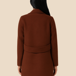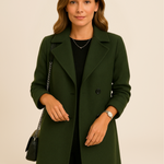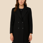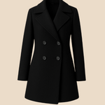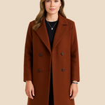 Ten klasyczny dwurzędowy płaszcz damski to połączenie ponadczasowej elegancji i nowoczesnego stylu. Wykonany z wysokiej jakości materiału, idealnie układa się na sylwetce, zapewniając komfort i szyk przez cały dzień. Posiada lekko taliowany krój, który pięknie podkreśla figurę, a klasyczny kołnierz oraz dwurzędowe zapięcie na guziki dodają mu wyjątkowego charakteru. Długość do połowy uda sprawia, że świetnie komponuje się zarówno z eleganckimi stylizacjami, jak i bardziej casualowymi zestawami. Boczne kieszenie dodają wygody, a staranne wykończenie gwarantuje trwałość i ponadczasowy wygląd. Ten model sprawdzi się idealnie w pracy, na spotkaniu czy wieczornym wyjściu.