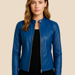 Ta kurtka damska skórzana to klasyk, który nigdy nie wychodzi z mody. Wykonana z wysokiej jakości ekologicznej skóry, łączy elegancję z miejskim charakterem. Krótki, dopasowany krój pięknie podkreśla sylwetkę, a zapięcie na suwak dodaje całości nowoczesnego wyglądu. Kurtka idealnie sprawdzi się zarówno w codziennych stylizacjach z jeansami i T-shirtem, jak i w bardziej eleganckich zestawieniach z sukienką lub spódnicą. Miękka podszewka zapewnia komfort noszenia, a staranne wykończenie gwarantuje trwałość. To ponadczasowy model, który warto mieć w swojej garderobie – lekki, stylowy i uniwersalny.