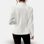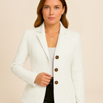 Ta marynarka to kwintesencja kobiecej elegancji – idealna dla kobiet, które lubią wyglądać stylowo i czuć się pewnie każdego dnia.