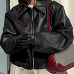 Modna kurtka bomberka damska z ekoskóry to stylowy wybór dla kobiet, które lubią nowoczesny, miejski look z nutą elegancji. Wykonana z wysokiej jakości ekoskóry, prezentuje się efektownie i zachowuje trwałość przez wiele sezonów. Jej luźny, lekko oversize’owy krój zapewnia wygodę i swobodę ruchów, a elastyczne ściągacze w pasie i przy rękawach nadają całości charakterystyczny fason typu bomber. Kurtka doskonale komponuje się z jeansami, spodniami typu cargo lub spódnicą mini, tworząc modne stylizacje na co dzień i na wieczorne wyjścia. Zapięcie na suwak oraz klasyczny kołnierzyk dodają jej praktyczności i szyku. To idealny element garderoby na sezon przejściowy – zawsze stylowy, uniwersalny i pełen charakteru.