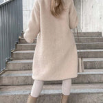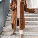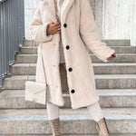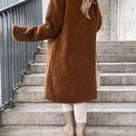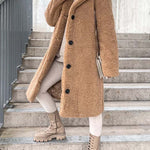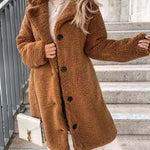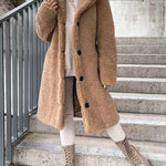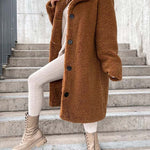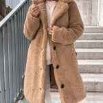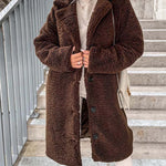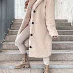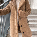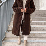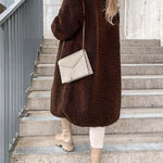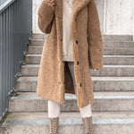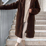 - Długi płaszcz damski z futerkiem typu teddy