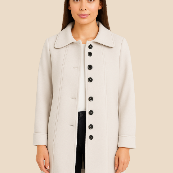 Elegancki płaszcz damski z kołnierzem – klasyczny płaszcz z guzikami
