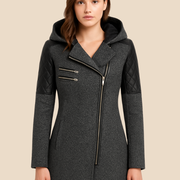 Długi płaszcz damski z kożuszkiem – elegancki płaszcz z futerkiem na zimę