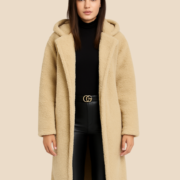 Płaszcz damski teddy z kapturem – ciepły pluszowy płaszcz na zimę