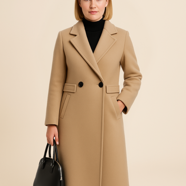 Płaszcz damski elegancki dwurzędowy – klasyczny płaszcz na jesień i zimę