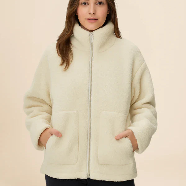 Bluza damska z futerkiem sherpa – ciepła bluza z zamkiem i kieszeniami