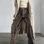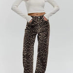 Damskie spodnie w panterkę z szeroką nogawką
