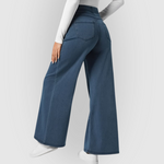 Jeansowe spodnie damskie z szeroką nogawką i wysokim stanem