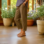 Lniane spodnie damskie 7/8 z kieszeniami – lekkie i eleganckie na lato