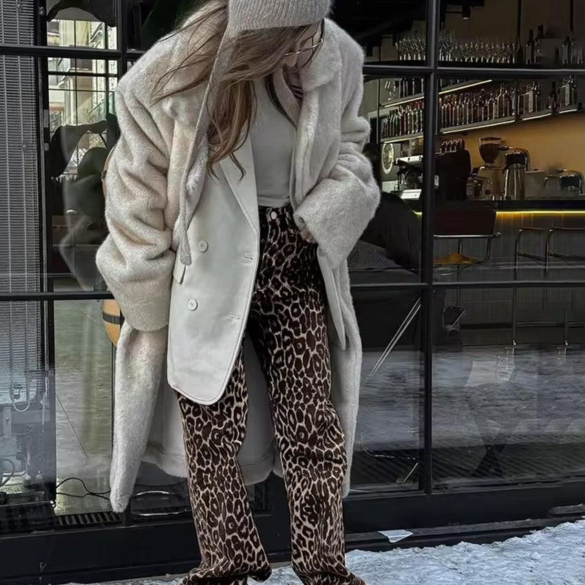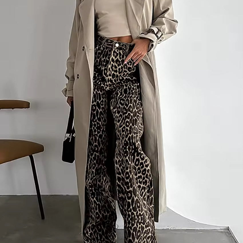 Damskie spodnie w panterkę z szeroką nogawką