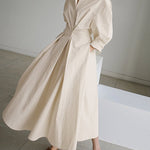 Elegancka sukienka koszulowa maxi z paskiem to idealne połączenie klasy, wygody i kobiecego wdzięku. Wykonana z wysokiej jakości materiału, delikatnie otula sylwetkę, tworząc płynny, lekki efekt przy każdym ruchu. Klasyczny krój z kołnierzykiem i długimi rękawami dodaje jej wyrafinowanego charakteru, a dołączony pasek w talii pozwala dopasować fason do figury i subtelnie podkreślić kobiece kształty. Długość maxi nadaje całości elegancki wygląd, dzięki czemu sukienka sprawdzi się zarówno w codziennych stylizacjach, jak i na wyjątkowe okazje. To model, który łączy ponadczasowy minimalizm z nowoczesną formą – idealny wybór dla kobiet ceniących prostotę i szyk.