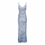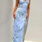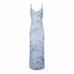 Ta urocza sukienka maxi w kwiatowy wzór to esencja kobiecości i letniej lekkości. Wykonana z przewiewnego, miękkiego materiału, idealnie dopasowuje się do sylwetki, zapewniając wygodę i świeży, romantyczny wygląd. Cienkie ramiączka i subtelny dekolt w kształcie serca pięknie eksponują ramiona oraz szyję, a dopasowany krój z delikatnym rozszerzeniem ku dołowi optycznie wydłuża sylwetkę.