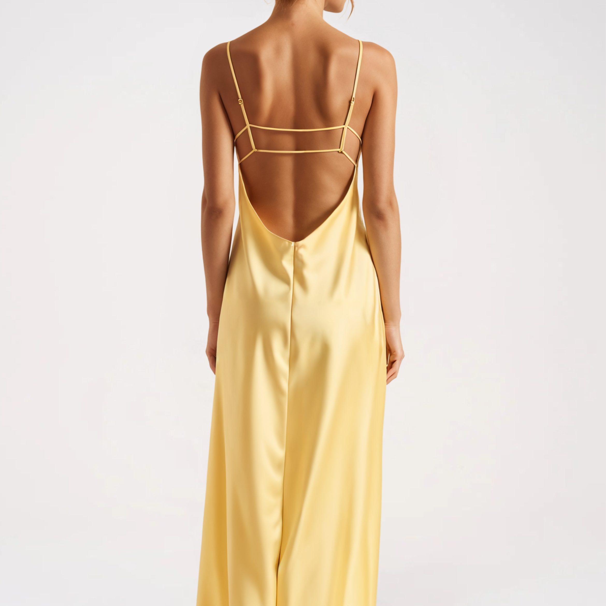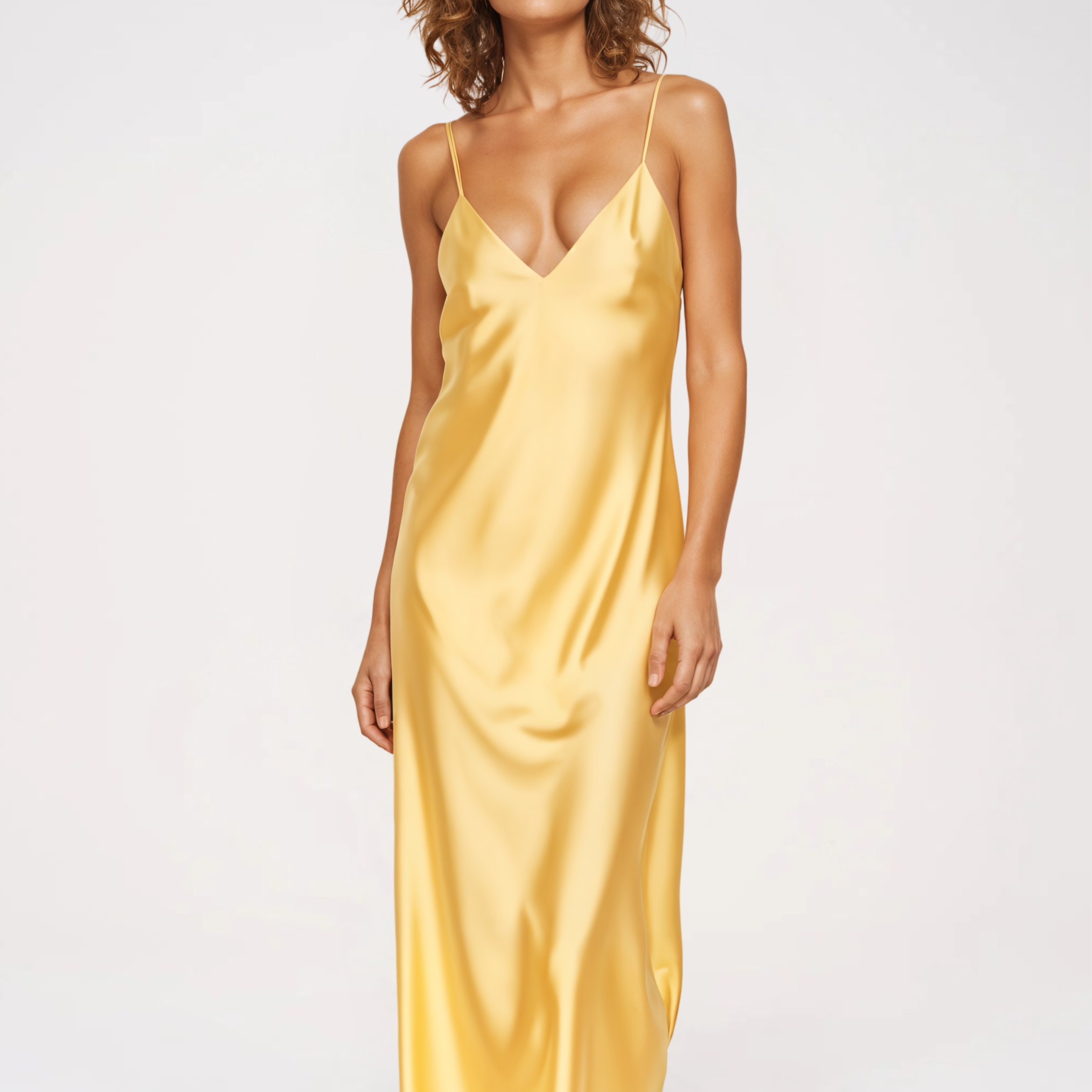 Sukienka satynowa midi na ramiączkach z rozcięciem
