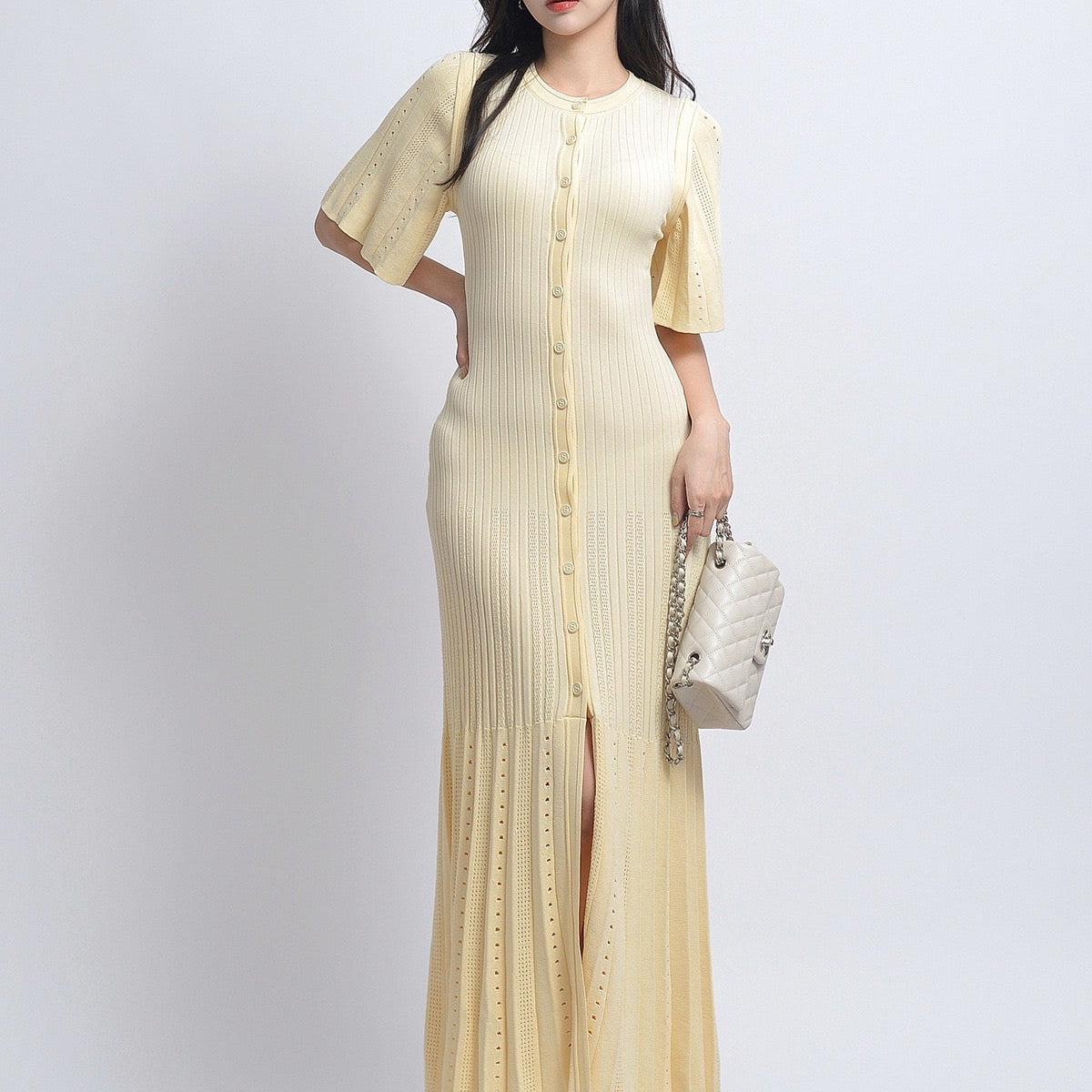 Sukienka damska dzianinowa midi z rozcięciem