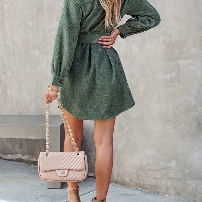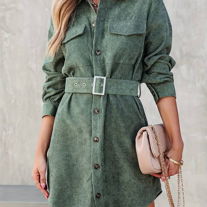 Sukienka sztruksowa koszulowa mini z paskiem w talii