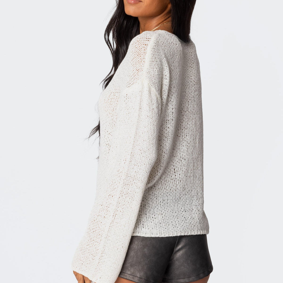 Sweter damski oversize w jasnoszarym kolorze – luźny krój z długim rękawem