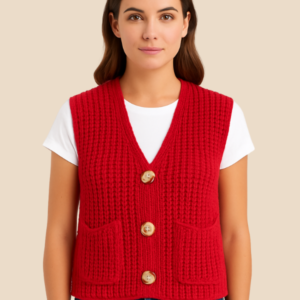 Damski dzianinowy bezrękawnik zapinany na guziki
