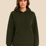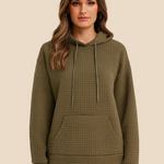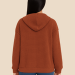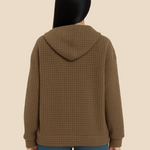 Bluza damska z kapturem z ciepłej dzianiny to idealny wybór na chłodniejsze dni. Wykonana z miękkiego, elastycznego materiału o przyjemnej fakturze, zapewnia komfort i swobodę ruchów. Kaptur dodaje jej sportowego charakteru, a prosty krój sprawia, że doskonale dopasowuje się do sylwetki. Bluza jest uniwersalna – możesz ją nosić do jeansów, legginsów czy dresów. Sprawdzi się zarówno w codziennych stylizacjach, jak i podczas relaksu w domu.
