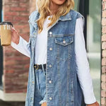 Stylowa długa kamizelka jeansowa to idealny element garderoby dla kobiet ceniących modny, swobodny styl z nutą klasyki. Wykonana z wysokiej jakości denimu, łączy trwałość i wygodę z ponadczasowym designem. Jej przedłużony krój optycznie wysmukla sylwetkę, a praktyczne kieszenie dodają funkcjonalności. Kamizelka świetnie sprawdzi się jako uzupełnienie codziennych stylizacji — zarówno z T-shirtem i jeansami, jak i z sukienką. To uniwersalny model, który nadaje charakteru każdej stylizacji, niezależnie od okazji.
