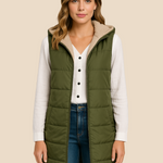 Długa pikowana kamizelka damska z kapturem to idealne rozwiązanie dla kobiet, które cenią styl i wygodę w chłodniejsze dni. Wykonana z lekkiego, ocieplanego materiału, doskonale chroni przed wiatrem i zimnem. Jej przedłużony krój wysmukla sylwetkę, a kaptur dodaje praktyczności i nowoczesnego charakteru. Kamizelka świetnie komponuje się z jeansami, swetrami czy bluzami – idealna na spacer, do pracy lub weekendowe wyjście.