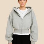 Krótka bluza damska z kapturem to idealne połączenie stylu i wygody. Wykonana z miękkiego, ciepłego materiału, zapewnia komfort w chłodniejsze dni, jednocześnie podkreślając kobiecą sylwetkę. Bluza posiada modny, krótki krój, który świetnie komponuje się z jeansami, legginsami lub spodniami dresowymi. Zamek błyskawiczny ułatwia zakładanie, a kaptur dodaje sportowego, casualowego charakteru. Idealna na codzienne wyjścia, spacery lub relaks w domu.