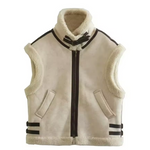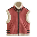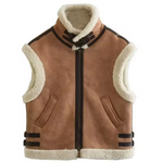 Stylowa i ciepła kamizelka damska z kożuszkiem to modny wybór na chłodniejsze dni. Wykonana z wysokiej jakości materiału imitującego zamsz, z wewnętrznym ociepleniem w postaci miękkiego futerka, zapewnia komfort i elegancki wygląd. Kamizelka ma prosty, dopasowany krój, który pięknie układa się na sylwetce, a kołnierz z kożuszkiem dodaje jej szyku i charakteru. Idealna do noszenia na swetry, bluzy lub golfy – sprawdzi się zarówno w codziennych, jak i bardziej stylowych stylizacjach jesienno-zimowych.