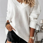 Sweter z dekoltem w serek oversize o grubym splocie