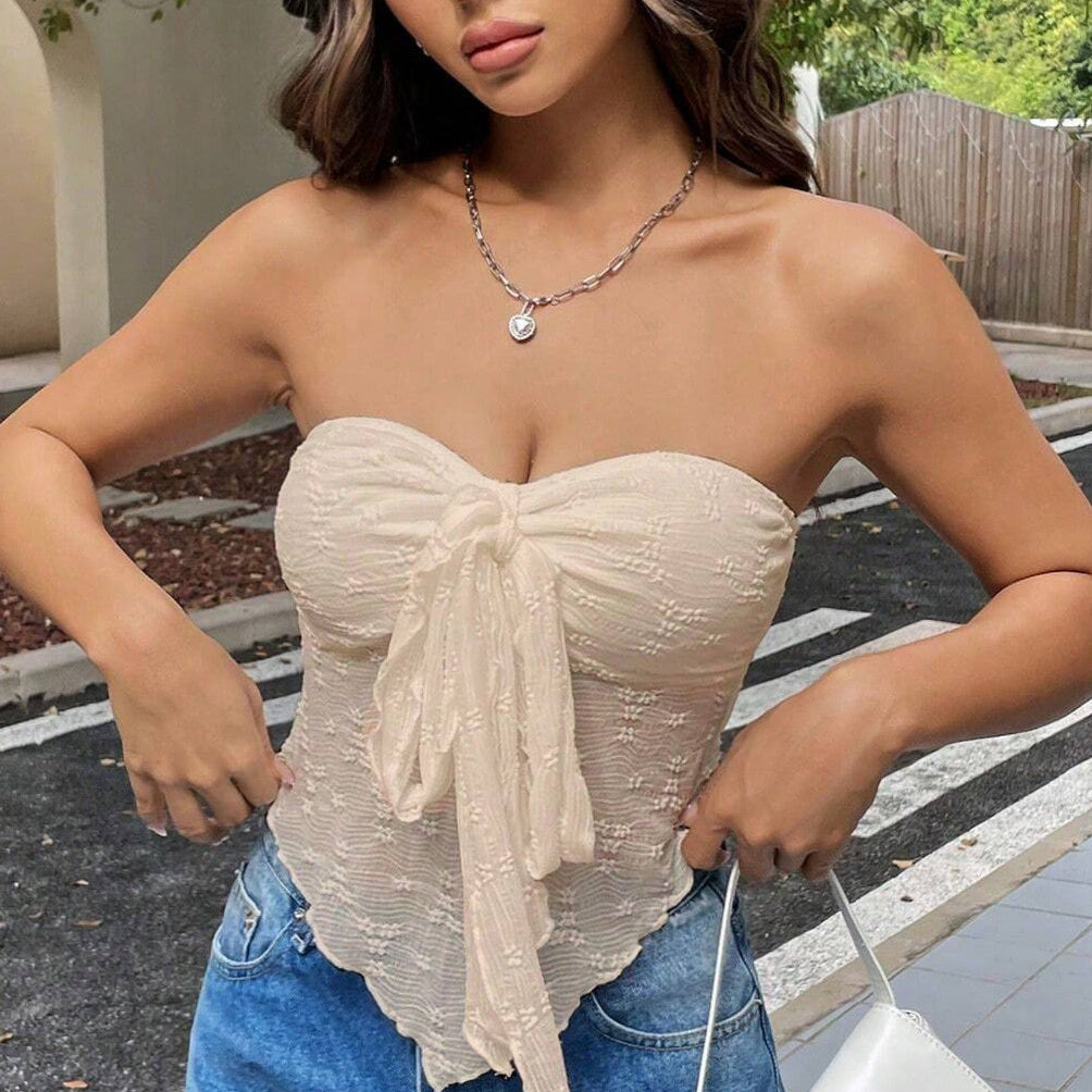 Top damski gorsetowy bez ramiączek z wiązaniem