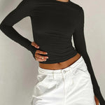Ten dopasowany top damski z długim rękawem to idealny wybór dla kobiet, które cenią nowoczesny styl i elegancję w prostym wydaniu. Wykonany z elastycznego, miękkiego materiału, delikatnie przylega do ciała, podkreślając figurę i zapewniając komfort przez cały dzień. Subtelne marszczenie z przodu nadaje mu wyjątkowego charakteru i sprawia, że wygląda lekko i kobieco. Top ma minimalistyczny fason z okrągłym dekoltem i długimi rękawami, dzięki czemu doskonale pasuje do jeansów, spodni z wysokim stanem lub spódnic. To model, który sprawdzi się zarówno w codziennych, jak i bardziej eleganckich stylizacjach – idealny na co dzień, spotkanie czy wieczorne wyjście.