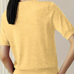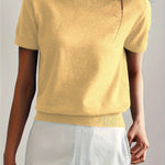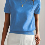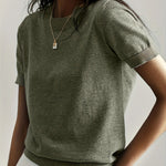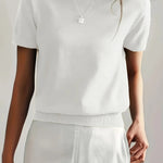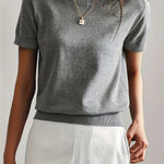 Ten dzianinowy t-shirt damski z krótkim rękawem to idealne połączenie prostoty, wygody i elegancji. Wykonany z miękkiego, elastycznego materiału o drobnym splocie, doskonale dopasowuje się do sylwetki, jednocześnie zachowując przewiewność i komfort noszenia. Klasyczny krój z okrągłym dekoltem sprawia, że ten model świetnie sprawdzi się zarówno w codziennych stylizacjach, jak i w bardziej eleganckich zestawach. Można go nosić do spódnicy, spodni z wysokim stanem czy marynarki – zawsze wygląda stylowo i schludnie. To ponadczasowy basic, który stanie się niezastąpionym elementem garderoby każdej kobiety. Dostępny w kilku uniwersalnych kolorach, które łatwo dopasować do każdej stylizacji.