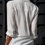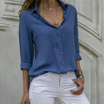 Elegancka koszula damska z dekoltem w kształcie litery V to must-have w garderobie każdej kobiety, która ceni połączenie klasy i wygody. Wykonana z lekkiego, przewiewnego materiału, doskonale układa się na sylwetce, zapewniając komfort noszenia przez cały dzień. Subtelny dekolt V wysmukla szyję i dodaje całości kobiecego uroku, a klasyczny fason sprawia, że koszula pasuje zarówno do eleganckich stylizacji biurowych, jak i casualowych outfitów na co dzień. Długie rękawy z możliwością podwinięcia dodają jej funkcjonalności. Idealna do jeansów, spodni materiałowych lub spódnicy – tworzy stylowy look na każdą okazję.