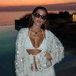 Elegancki kardigan damski z ozdobnymi kwiatami i perłami to wyjątkowy element garderoby, który łączy w sobie luksus i subtelność. Wykonany z wysokiej jakości miękkiego materiału, zapewnia komfort noszenia, a jego bogato zdobiona faktura przyciąga wzrok i dodaje każdej stylizacji wyjątkowego charakteru. Trójwymiarowe kwiaty, delikatne perły i haftowane detale tworzą niepowtarzalny, romantyczny efekt, idealny na wieczorne wyjścia, eleganckie kolacje czy wyjątkowe okazje. Luźny, lekko oversize’owy krój gwarantuje swobodę ruchów, a kremowy odcień sprawia, że pasuje do wielu stylizacji – zarówno eleganckich, jak i casualowych.