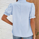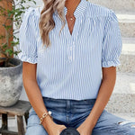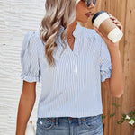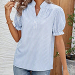 Koszula damska w paski z krótkim rękawem i dekoltem V