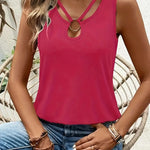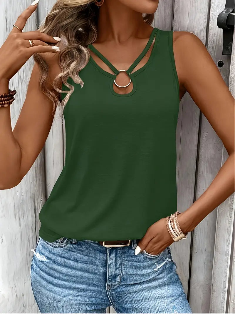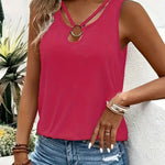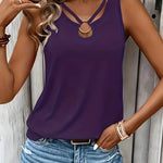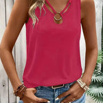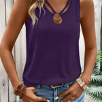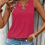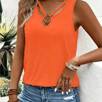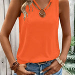 Letni top damski bez rękawów z dekoltem V to uniwersalny element garderoby, który łączy prostotę, styl i wygodę. Wykonany z lekkiego, przewiewnego materiału, idealnie sprawdza się w ciepłe dni, zapewniając komfort i swobodę ruchów. Delikatny dekolt w kształcie litery V subtelnie podkreśla szyję, a luźny krój sprawia, że top pasuje do każdej sylwetki. Model ten doskonale komponuje się z jeansami, szortami lub spódnicami, tworząc zarówno codzienne, jak i bardziej eleganckie stylizacje. Dostępny w wielu kolorach, pozwala dobrać odcień odpowiedni do Twojego stylu i nastroju. To must-have każdej kobiety, która ceni minimalizm i kobiecy urok.