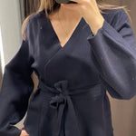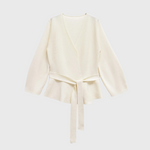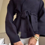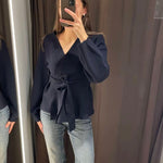 Ta stylowa bluzka damska to połączenie elegancji i kobiecego uroku. Wykonana z wysokiej jakości, gładkiego materiału, pięknie układa się na sylwetce i podkreśla talię dzięki efektownemu wiązaniu w pasie. Dekolt w kształcie litery V dodaje lekkości i delikatnie wysmukla szyję, a długie, lekko rozszerzane rękawy nadają całości subtelnej elegancji.