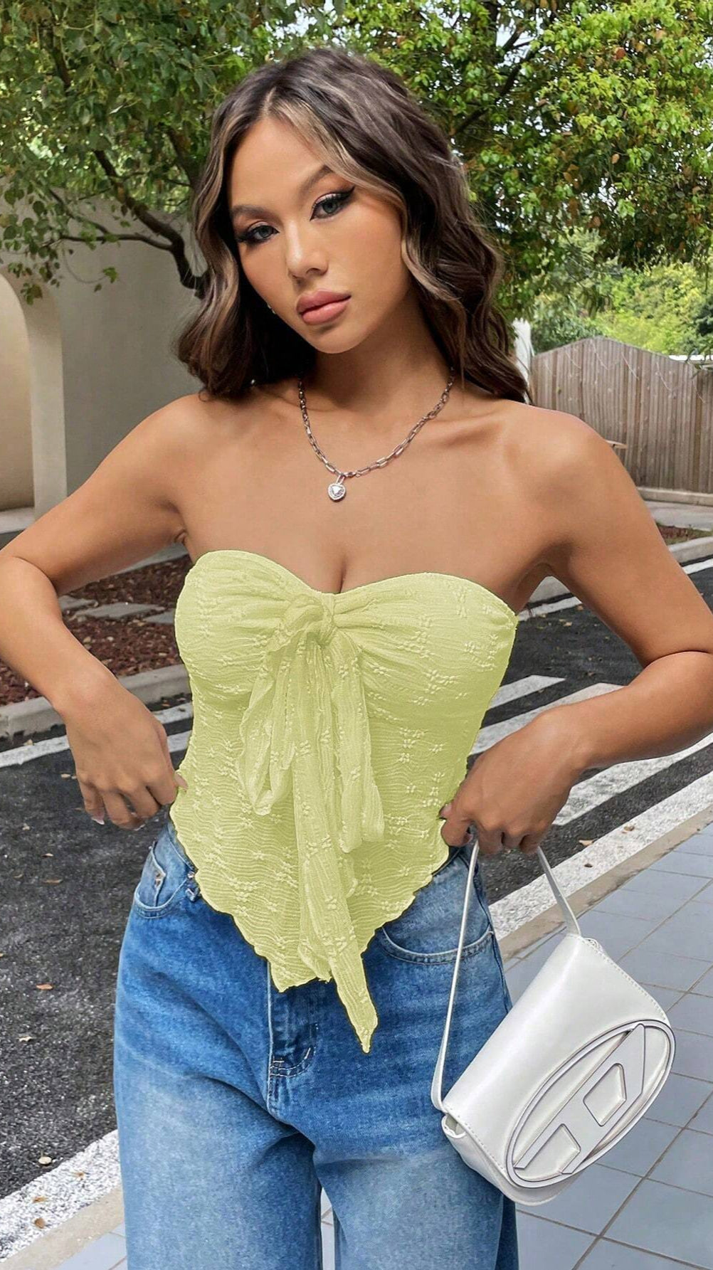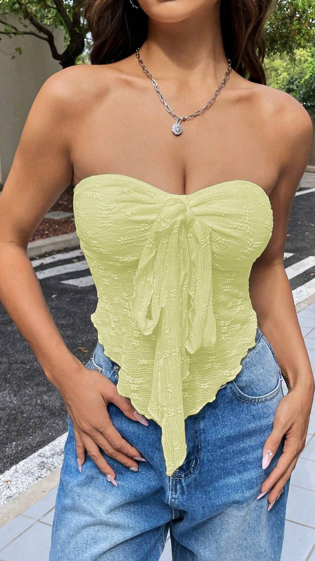 - Drapowania i ozdobne wiązanie z przodu